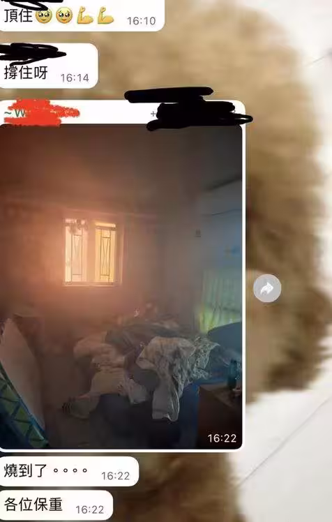 香港大埔宏福苑26日下午發生火警,火勢迅速延燒,7棟逾30層樓大廈瞬間被大火吞噬,死亡人數增至44人、279人失聯。現在網絡上瘋傳一段對話,看到有一名受困居民,發現大火已經燒到自家窗外,絕望在群組留下遺言,「燒到了…各位保重。」掀起熱議。