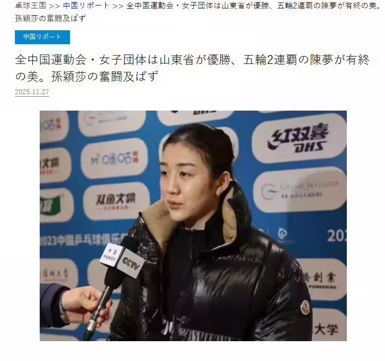 當日本權威桌球雜誌《卓球王國》用「陳夢亦有終之美」盛讚奪冠時刻,這場跨越12年的全運征程,早已超越勝負本身,成為陳夢職業生涯最動人的閉環。31歲的她帶著重傷復出的堅韌,率領山東女團在絕境中逆襲,用一枚沉甸甸的金牌,為可能的最後一屆全運會畫上圓滿句號。