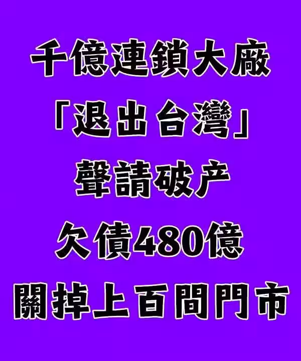 快訊 / 千億連鎖大廠「退出台灣」聲請破產!欠債480億「關掉上百間門市!」