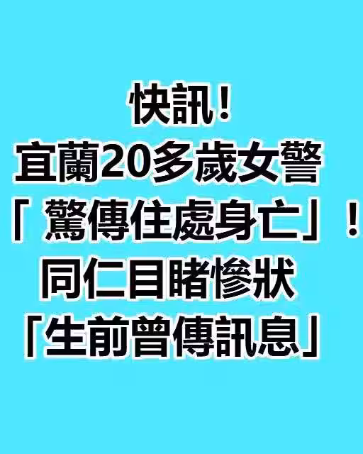 根據《ETtoday新聞雲》報導,宜蘭警界傳出令人悲痛的消息,一名警專第38期畢業、20多歲的王姓女警,日前在租屋處浴室內不幸猝逝,讓所有認識她的人都難以接受這個突如其來的噩耗。