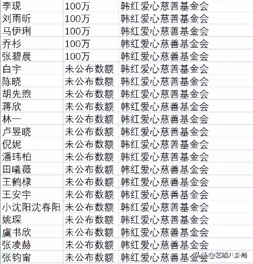 還有蔣欣、張凌赫、張鈞甯、王安宇、王鶴棣、白宇、田曦薇、小瀋陽夫婦等藝人,都以不透露具體數額的方式,參與了捐款。