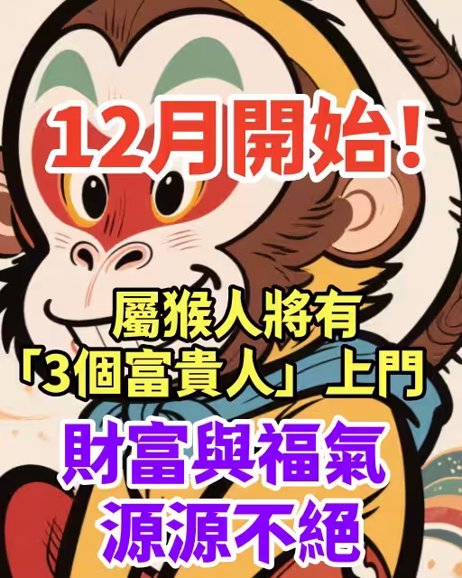 屬猴的朋友們,你們天生聰慧敏捷,擅長掌握時機,總能在關鍵時刻脫穎而出。 12月一到,好運便緊跟而來,將有「三位富貴貴人」陸續登門,為你們帶來源源不絕的財富與福氣,讓人看了都羨慕不已。 現在,就讓我們揭開這三位貴人的神秘面紗,看看他們如何助屬猴人踏上富貴康莊大道。