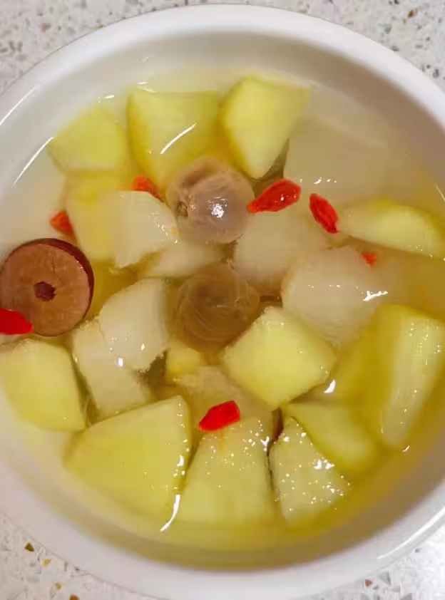 蘋果煮熟後軟軟甜甜的,對脾胃特別友好;雪梨潤肺生津,還能清熱;紅棗桂圓補氣血,枸杞明眸暖身。