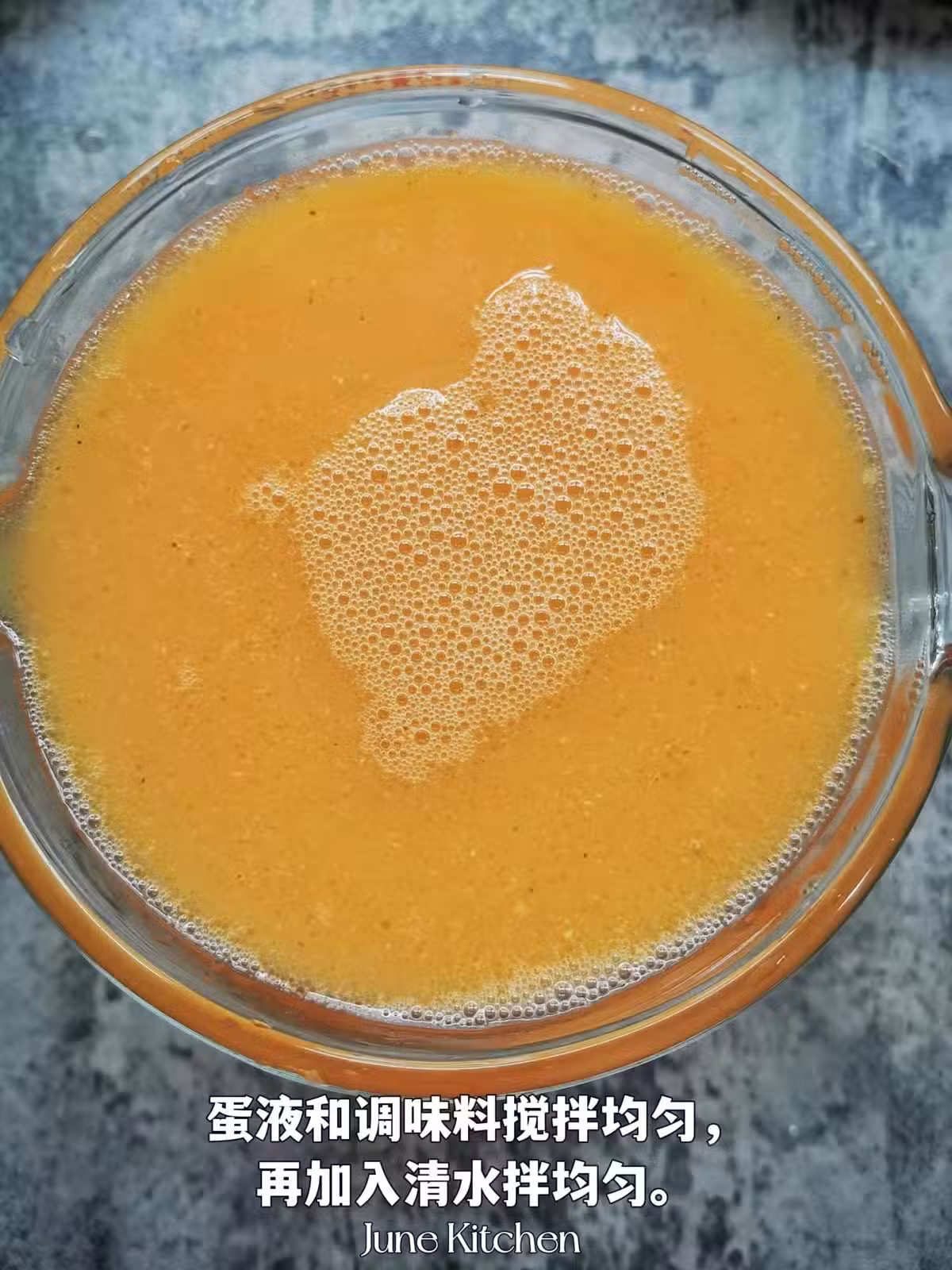 3️⃣雞蛋液過濾到肉碎上,鹹蛋黃和皮蛋切丁備用。