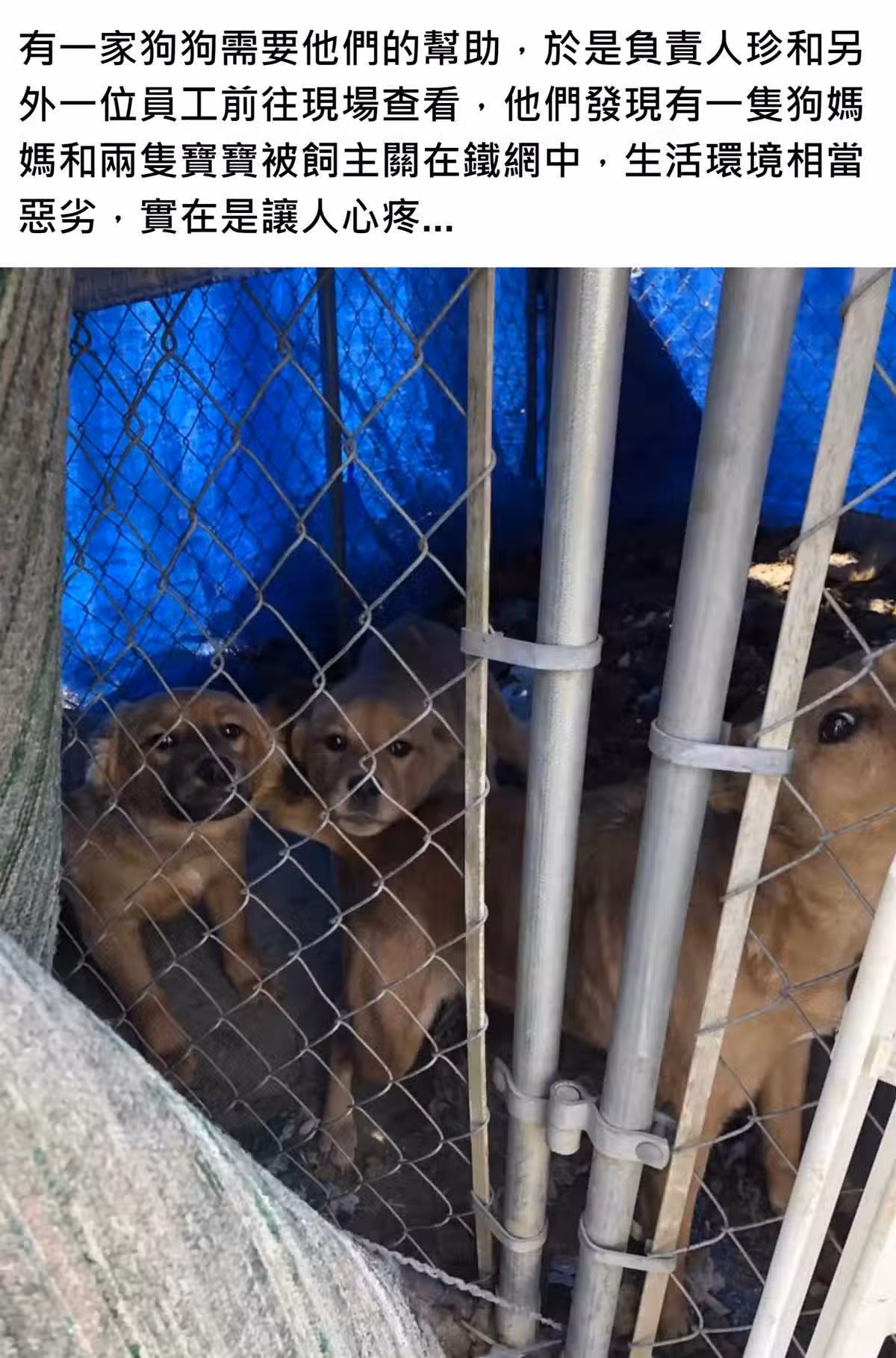 狗狗一家「被關鐵網」自生自滅!獲救後兩寶「互相依偎」暖心安撫彼此:我們會沒事的