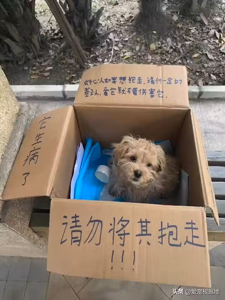 狗狗被裝紙箱丟在路邊,箱子上的字讓人心疼,原來丟它的並非主人