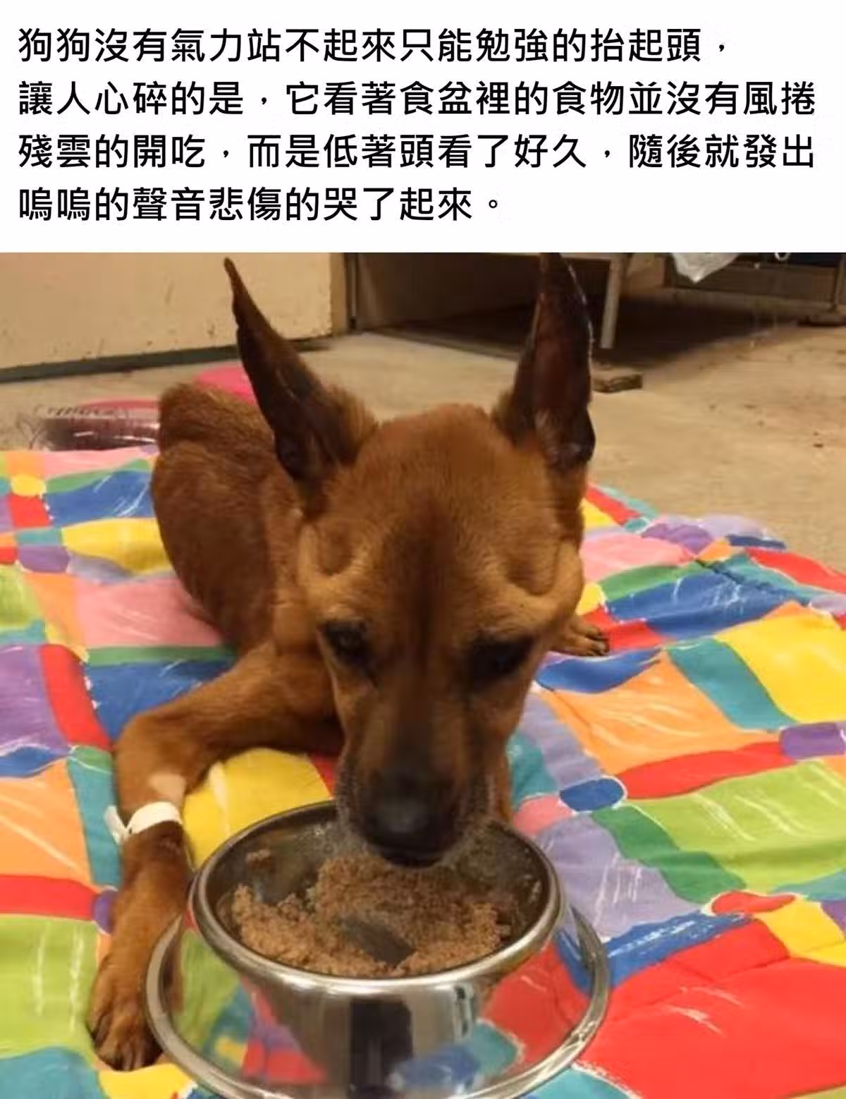 流浪狗暈倒在路邊即將失去生命,新主人送牠去醫院,看到食物牠哭了