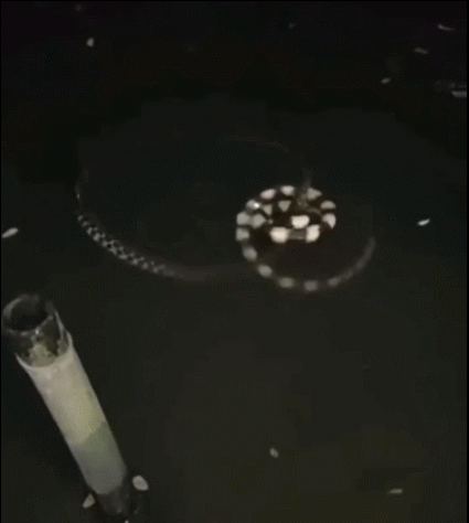 深夜的池塘中,一條蛇「包圍」了另一條蛇,不停地在水面上打著轉……誰能解釋一下,這到底是怎麼回事?這兩條蛇到底是在干什麼呢?