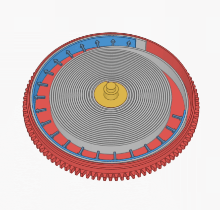 當心軸在內部旋轉時,這會鎖定主發條的外端。直到我們一直給發條上弦超過其最大容量,他們就會克服摩擦,讓主發條在發條盒內部滑動——這可以作為防止零件斷裂的安全機制。