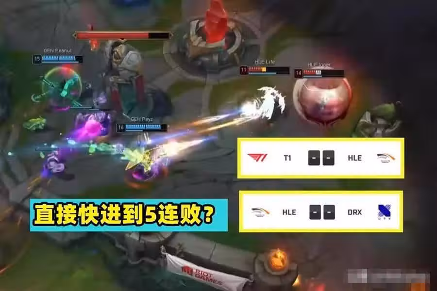 中路的Zeka還是那個老問題,對線不會崩線,但團戰永遠沒聲音,即使是一個發育到後期的卡薩丁,也依舊逃不脫被Doran納爾拍墻限制的處境。仿佛沒有了阿卡麗和塞拉斯,他Zeka就不知道該怎麼玩游戲了。在HLE輸給GEN迎來自己的三連敗之後,有不少玩家就已經開始期待後面的連跪了,之所以會這麼想,是因為 HLE接下來將對陣T1以及DK,這不妥妥地直接快進到五連敗嗎?