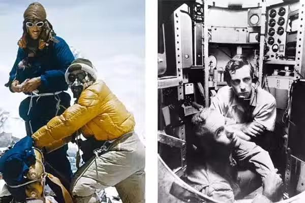 勞力士曾於1953隨約翰•亨特爵士領導的英國探險隊登頂珠峰(左),隨美國海軍上尉唐•沃爾什(Don Walsh)與瑞士發明家雅克•皮卡德(Jacques Piccard)一同潛入馬里亞納海溝,1960(右)。