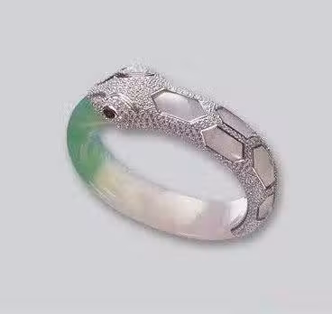 這是一隻蛇紋的設計,曾有姐妹說過,具有濃郁的波希米亞風格,精緻的蛇鱗,再配上畫龍點睛的兩顆眼睛,(一直都奇怪,它的眼睛為什麼不是紅色的,更栩栩如生),矯若游龍,下界為蛇,龍到處有水,水為財,靈性乍現。