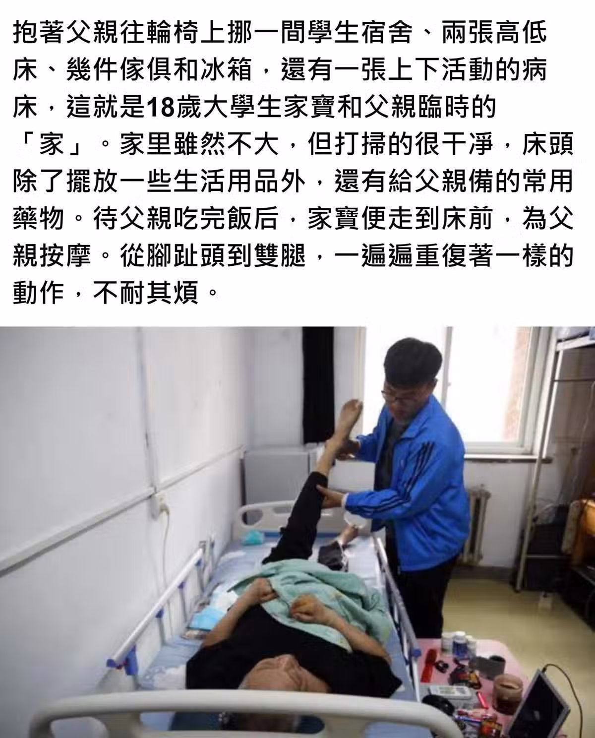 母走父臥床!18歲學生「獨自扛家計」從不喊苦 6年如一日「帶著爸爸一起上學」:爸爸在哪就是家