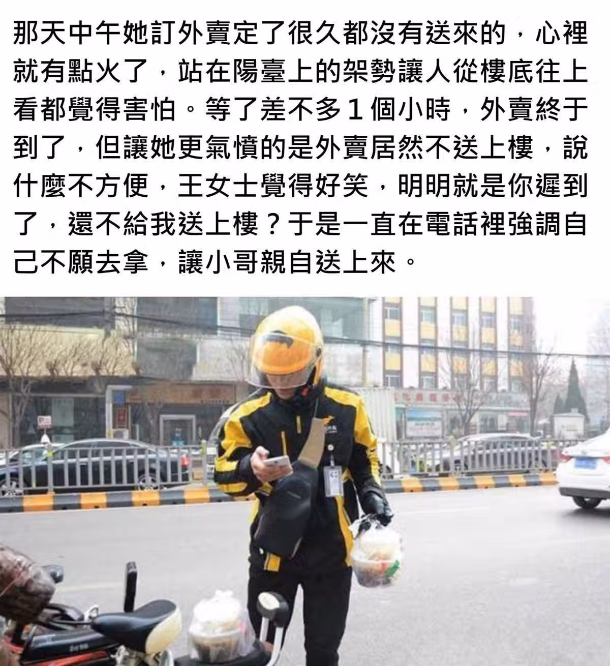 外賣遲到1小時才來!生氣準備給差評 5歲兒子指指「騎手的車」,後寶媽愣了 :希望他能原諒我