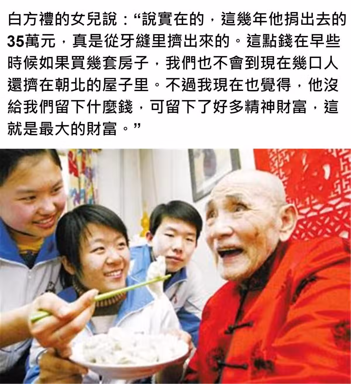 74歲攢下35萬!一個饅頭,一碗白水!幫助300名貧困生念完大學
