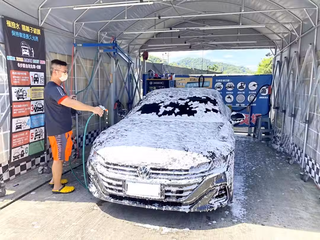 洗車第一步驟就是先噴泡沫,讓泡沫溶解粉塵。