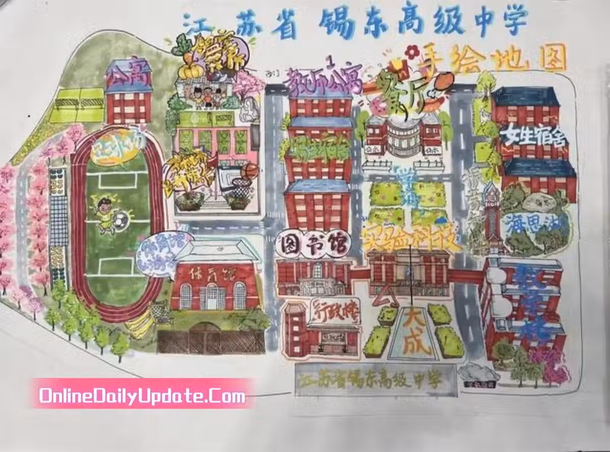 這是陸希雅手繪的錫東高級中學地圖,今年6月是她的高中畢業季,她用這幅地圖表達對母校的深深愛戀。