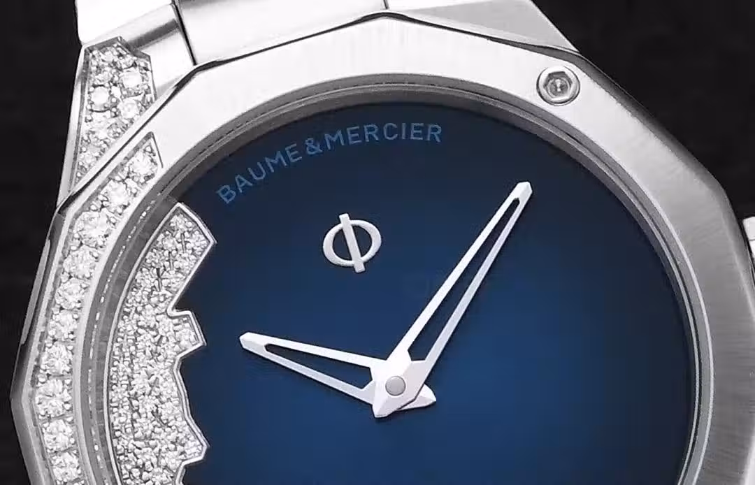 與太陽緞面打磨的漸變暗夜藍色漆質錶盤相搭配的是鏤空指針,二者共同折射出耀眼的藍色光芒,美輪美奐。