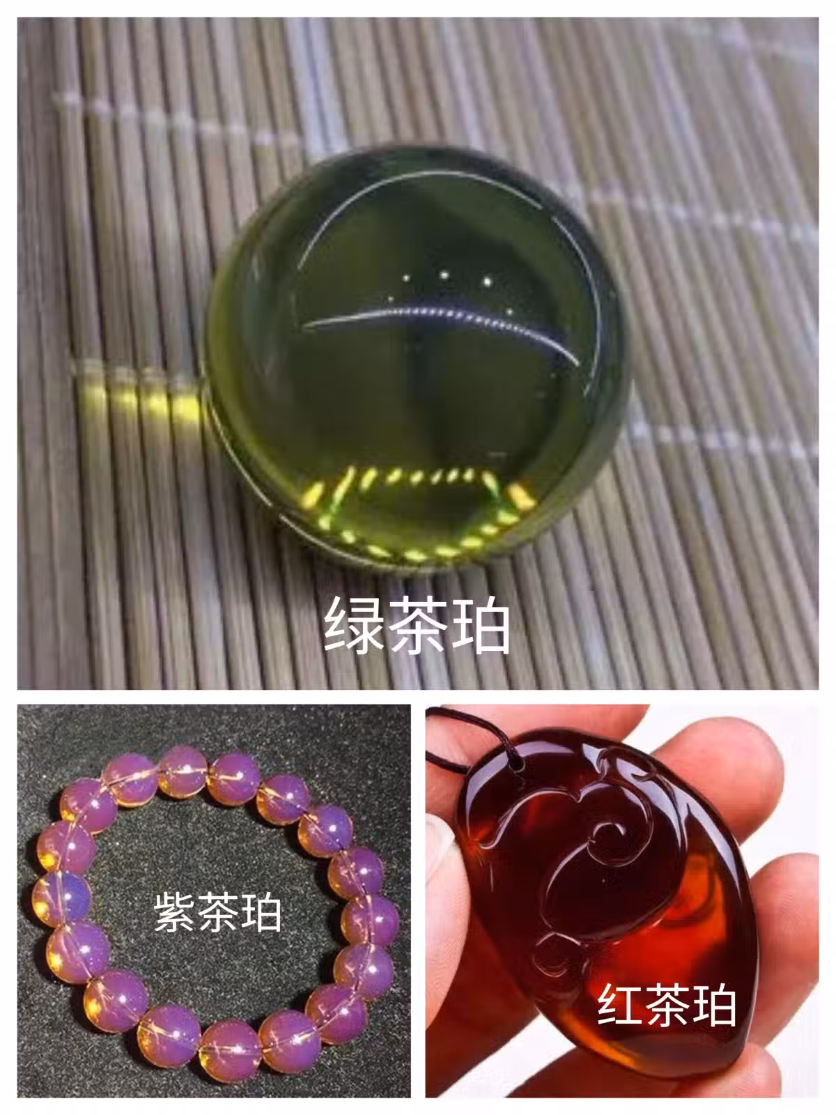 綠茶珀在太陽光下有機油光,主要是指透光色呈綠偏茶水色的琥珀,機油光是紫色的深綠琥珀,和機油光淺的豆綠或者淺綠珀。