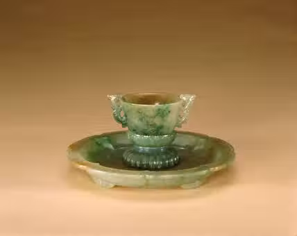 此種托杯器,宋、明之時已流行,樣式頗多,清代的作品更為精緻,乾隆朝所制玉、翠托杯為托杯中之珍品。