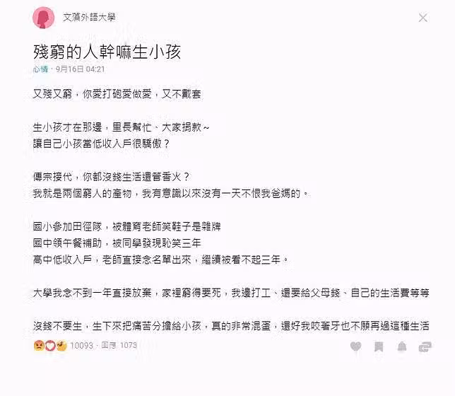 窮人別生小孩!女大生淚訴「沒有一天不恨爸媽」 她怨嘆「出生是來受苦的」:憑什麼要我接受