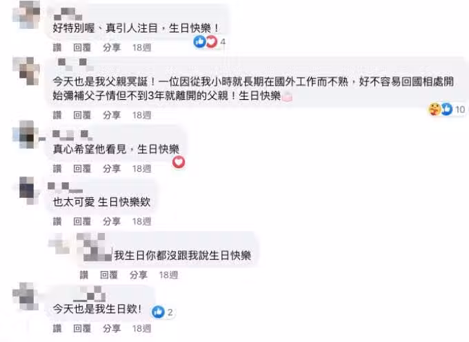 「生日快樂,希望這位壽星能在路觀上看到大家的祝福」,「好溫暖」,「天蠍暖心」,「好可愛,希望溫柔的你被世界溫柔以待」,「好可愛希望大家這麼有愛心,生日快樂,平安健康。」