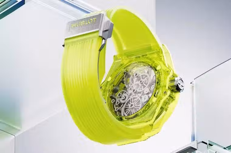 繼綠色SAXEM錶殼後 宇舶大爆炸陀飛輪首度啟用螢光黃透明錶殼