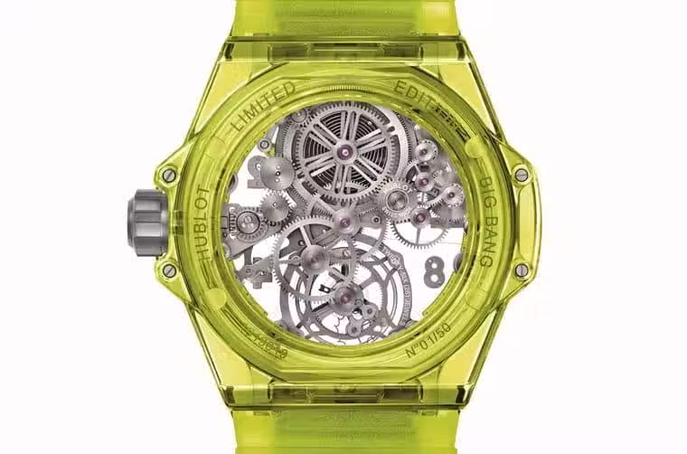 繼綠色SAXEM錶殼後 宇舶大爆炸陀飛輪首度啟用螢光黃透明錶殼