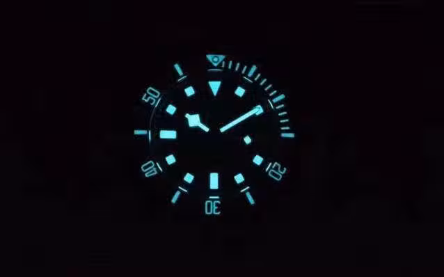 藍色戰斧的夜光非常漂亮,外圈數字指標和刻度呈現藍色夜光效果,靜下心來欣賞真的是別具一番美感,充足的夜光方便夜晚的讀時,效果絲毫不亞於水鬼,所以說「小勞力士」之稱不是空穴來風的。