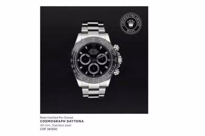 ▲目前寶齊萊官網的一款Daytona 116500原廠認證中古錶價格達34,000瑞郎,比起市場行情還要略高一些。