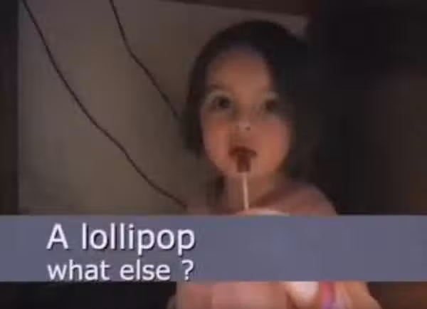 卡普辛便眨著無辜的水汪汪大眼,將手中的棒棒糖拿給媽媽看。