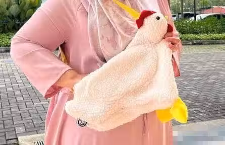 有網友曬出自己「搶」到的母雞斜挎包,並配文表示,包的質量還不錯,但炸雞的味道更好~