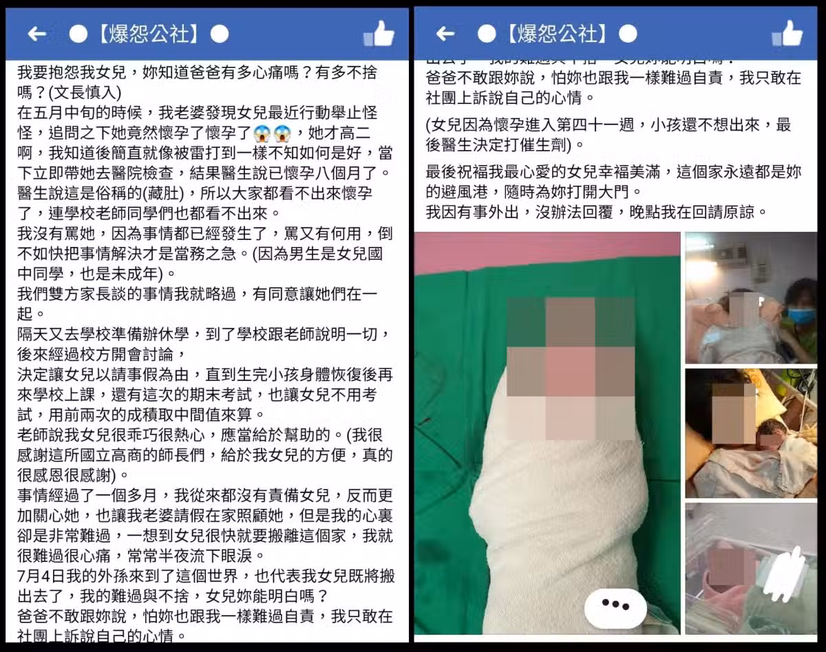 事情發生後,爸爸給了女兒更多關心,媽媽也請假在家照顧,但爸爸也說真心話「一想到女兒要搬出家裡了,我就很難過與心疼,我的難過與不捨,女兒妳知道嗎?爸爸不敢跟妳說,怕妳跟我一樣自責,所以只敢來社團抒發心情,7月4號我的外孫來到這世界了,也代表妳要離開我了,我祝福我最愛的女兒幸福美滿,這個家永遠都是妳的避風港」,不少網友也感動留言「爸爸真棒,女兒會很幸福的」、「女兒有你們的支持是幸福的。至少你們陪伴了她度過最艱難的時刻~往後的日子她更需要你們的指導如何成為一位母親,加油,祝福你們一家人!」、「 真的寧可讓她們知道有個家可以靠也不要反對!」。