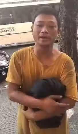 滿臉滄桑的萬永福對著鏡頭說:「我叫萬永福,來自中國,目前已經在巴西街頭流浪一年多,靠著路人的施捨勉強活下去,至今不敢跟家裡人說……」