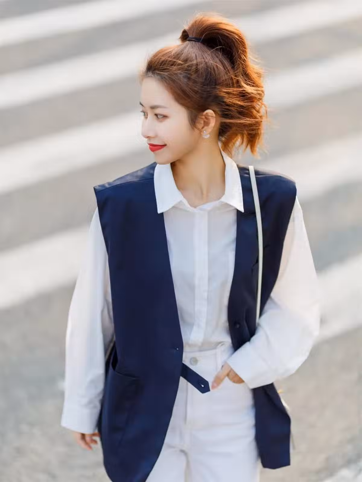拍照的時候,如果穿著的衣服剛好有口袋的話,可以讓自己在手不知道怎麼放的時候,自然地把手插在你的褲兜里,這樣去擺拍又酷又自然。