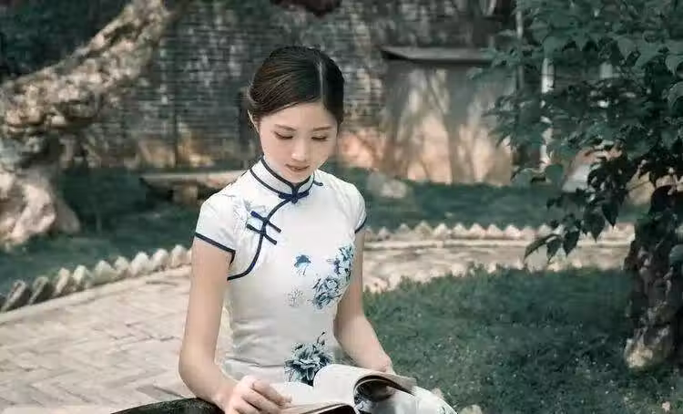 比如下圖,具有古韻的公園里,模特坐在石桌前靜靜地看書。素色的旗袍和干凈的背景,看起來讓人賞心悅目!