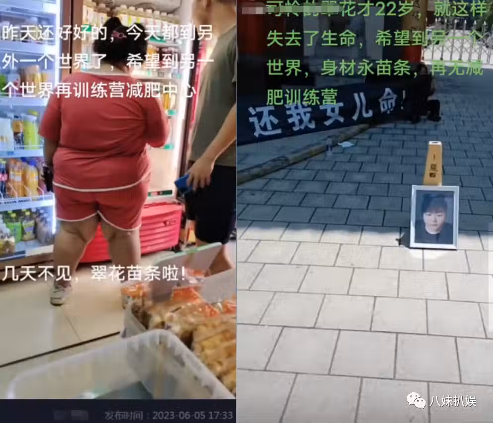187kg網紅翠花減肥猝s,曾哭嚎不練了,父母在訓練營門口擺遺照