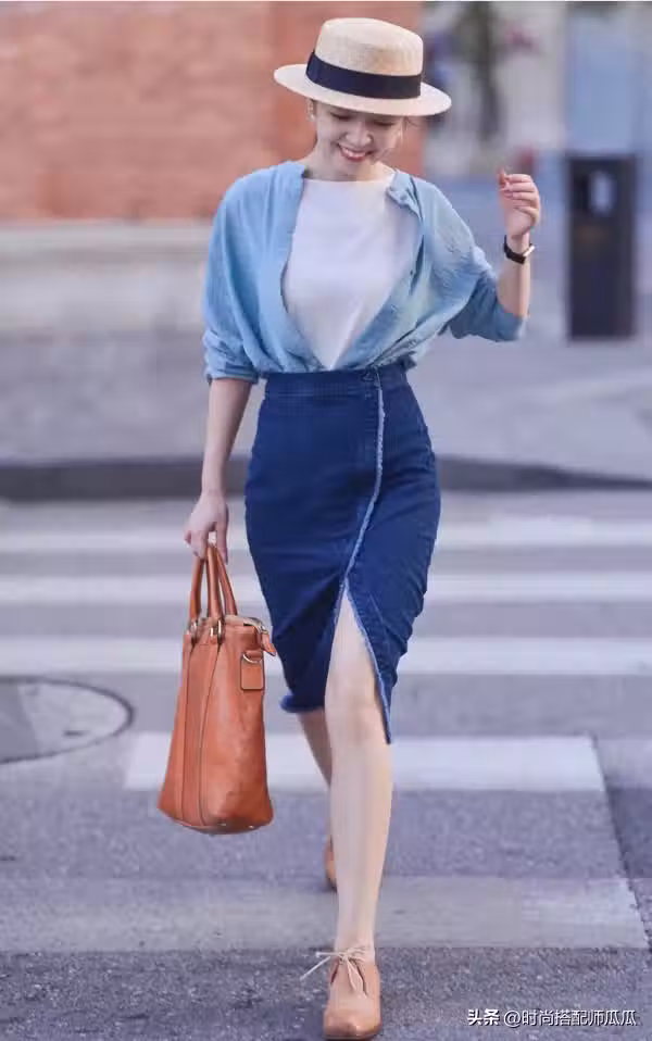 裙子的搭配與上衣還是在這裡推薦大家一種穿法,就是根據自己的身形狀態營造上下不同鬆緊線條的對比感,例如下半身的裙型是屬於百褶或者是略微寬鬆的膝下裙,那麼上身的搭配就推薦貼身或者是修身的一類,有了對比之差才能夠彰顯顯瘦感。