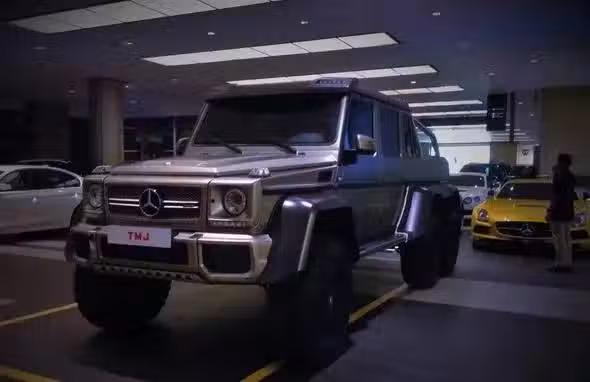 東古依斯邁車庫中除了超跑和性能怪物以外,還有許多越野車,這輛車庫中的奔馳G63 AMG 6X6,這輛車在國內售價要1000多萬。 而且在國內還有一個規定就是車身要被噴字,這也是為什麼國內土豪即使有錢也不願意買這輛車的原因。東姑依斯邁還有勞斯萊斯、賓利和其他的一些商務用車,車庫內的車可以說應有盡有!