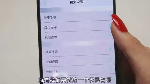 首先打開手機的設置功能,找到權限管理一欄,點進去會出現如下圖所示的完整頁面。