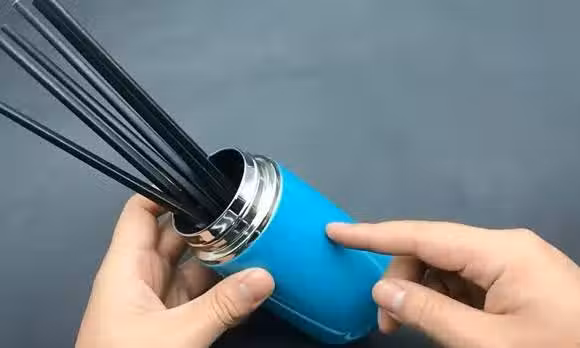 將廢舊保溫杯清洗干凈,用開水消毒之後晾乾水分,用來收納筷子非常實用!