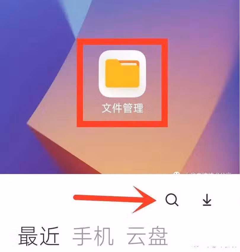 首先我們在手機上面找到文件管理並且把它打開,打開之後,就會出現很多英文文件夾,我們需要對這些文件夾進行刪除,此時我們點擊上面的放大鏡,然後按搜索以下文件夾!