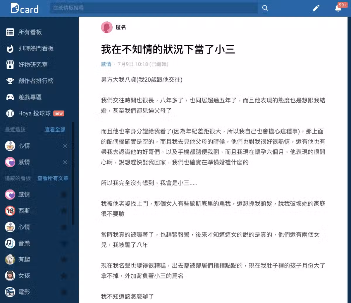但原PO也擔心,孩子未來會被後母虐待,「所以我也諮詢律師,目前再怎樣都得先把小孩生下來。」網友紛紛搖頭勸:「家人朋友也幫著騙,男的太不要臉了。」、「現在男女都很會隱藏偽裝,防不勝防。」、「根本把你當生小孩工具!好扯!」、「建議出養!元配都鬧到人盡皆知,爺爺奶奶疼又如何,孩子一定會被人家指點長大。」