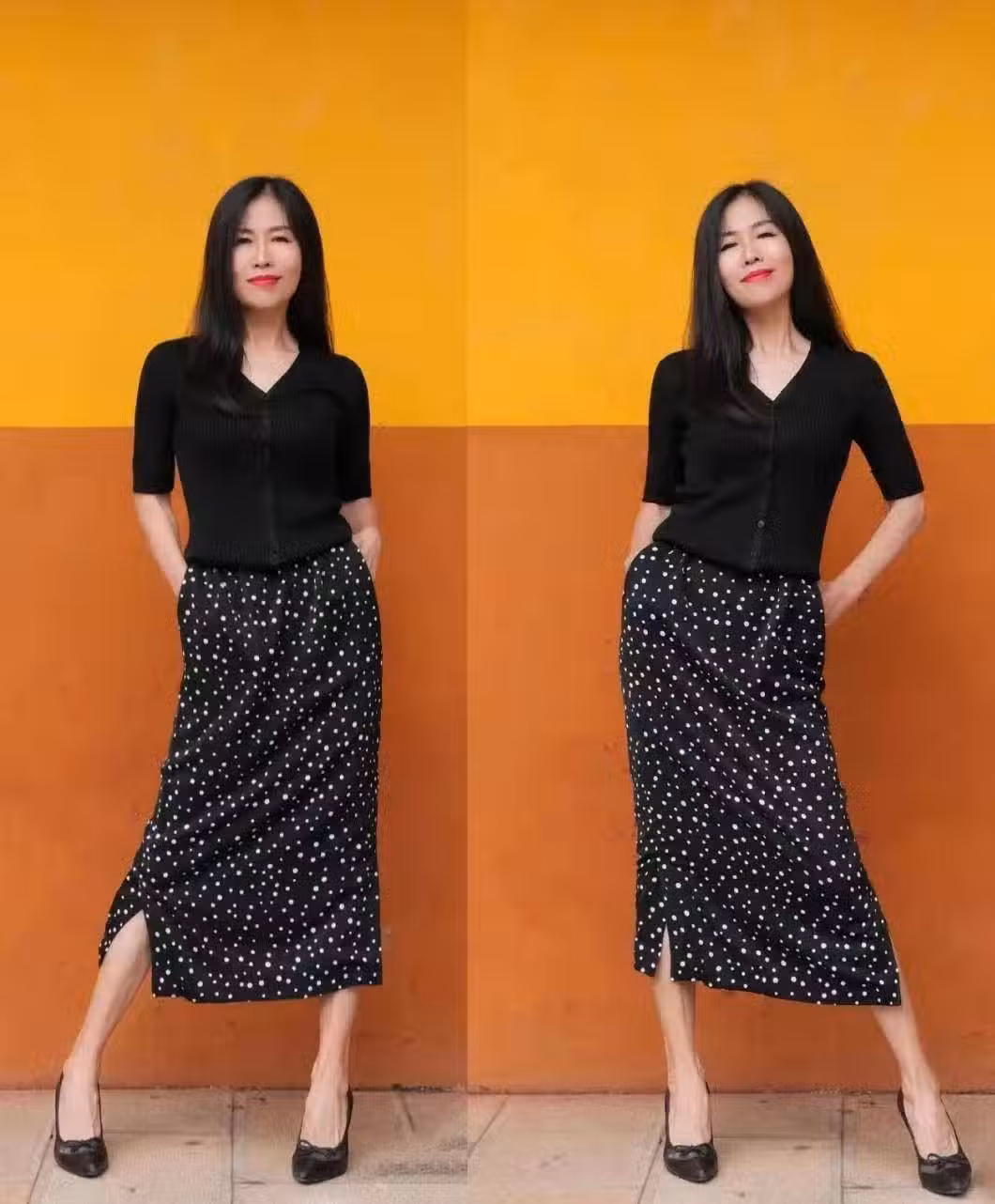 越是簡約大方的服裝外觀,越容易突出中年女性的氣質,而針織上衣不僅能夠散發出溫柔氣息,同時也能塑造冰涼軟糯的上身效果。
