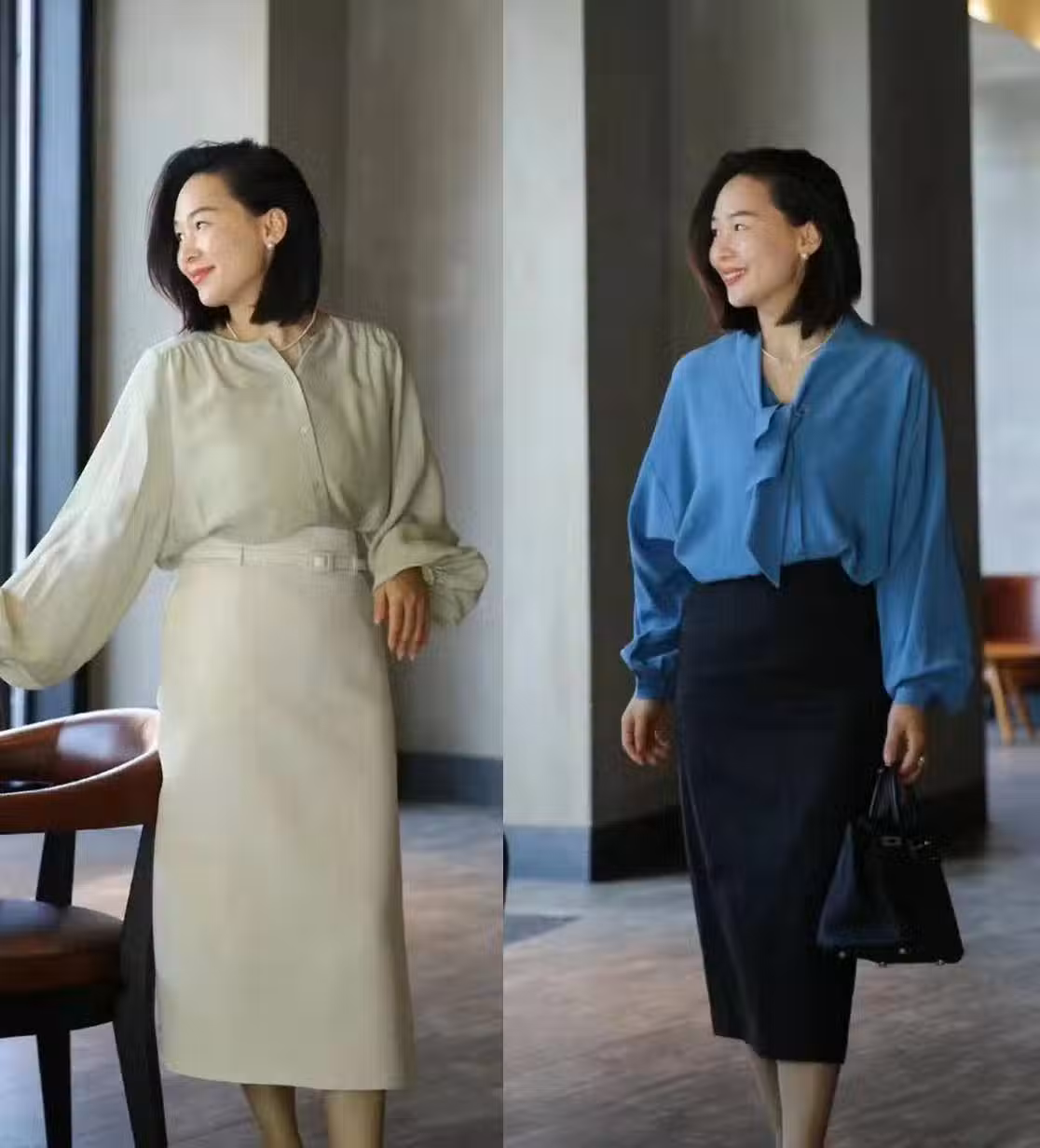 因為上衣位於造型重心,往往對於外形風格的塑造有著比較大的影響,而一些擔心不顯氣色的女性,她們會將視線更多地放在淺色襯衫上。