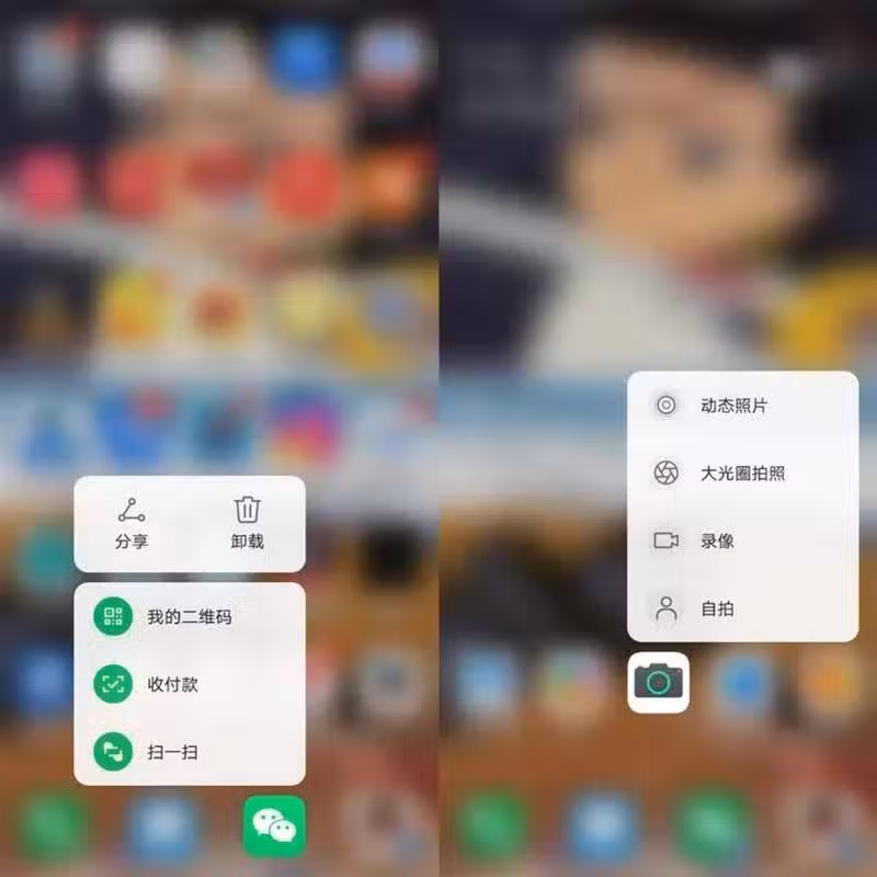 不管是系統自帶的應用程序,還是你從第三方網站下載下來的APP,基本都具備軟體的快捷方式,我們只需要長按軟體圖標兩秒,就可以使用它的快捷功能。