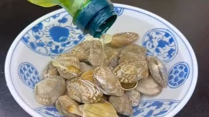 妙招三,香油。先往花蛤中加入多一些的清水沒過花蛤,再往裡邊放入幾滴香油。
