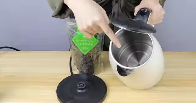 這時候,將熱水壺裡加入適量的白醋和清水,然後按下燒水鍵讓它煮沸。
