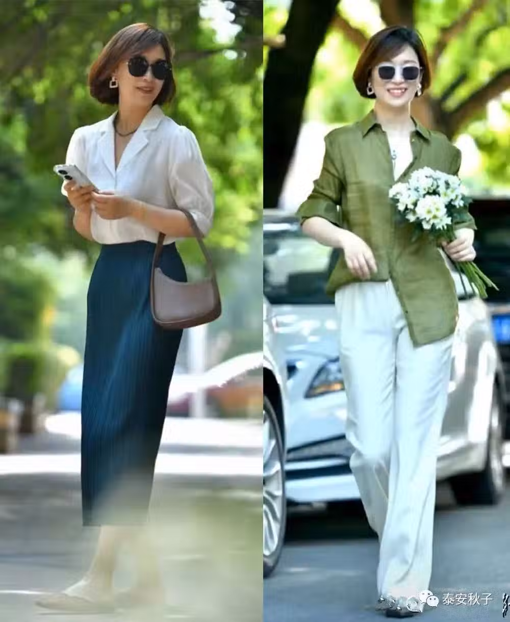 對於想要利用穿搭,達到減齡效果的中年媽媽而言,像這種簡約、基礎的襯衫款式,能最大程度地展現中年女性獨特的美。