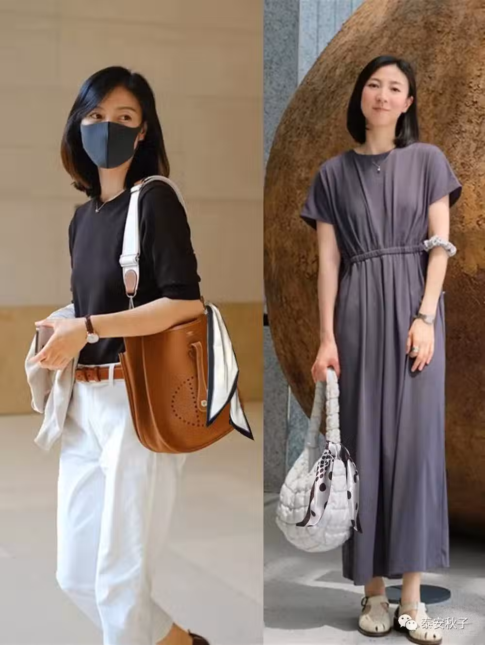 不管是系在脖頸間,還是扎在包包的帶子上面,只要我們以經典耐看的花紋圖案加持, 然後再以色彩比較純的衣服進行組合,就能形成更好的層次美。